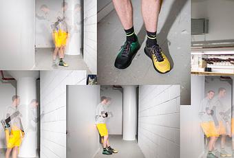 Cette première collaboration s’articule autour de 6 paires de Hupanna présentant des motifs et des coloris différents sur chacun des pieds. Une série de silhouettes colorées sont ainsi présentées avec deux paires tricolores blanches, rouges, bleu ainsi que verte, noire et jaune le tout fondu dans un dégradé. Deux autres paires présentent des gradients moins colorés avec une silhouette aux nuances de bleu accompagnée d’une paire grisonnante. Enfin, la collection comporte également deux paires unies grises ou noir présentant des motifs différents selon le pied.