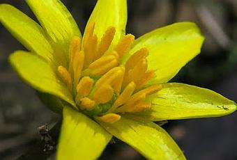 Ficaria verna (Ficaire) : tiges étalées, feuilles entières luisantes, ovales, cordées ; fleurs solitaires à 3 sépales et 6-12 pétales jaunes, akènes dépourvus de bec. Forêts mélangées fraîches à humides.