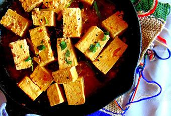 3-Préparer le tofu (un bloc coupé en cubes) en le faisant bouillir dans de l'eau pendant 2-3 minutes (ça fait qu'il va s'imbiber des liquides de la sauce et sera encore meilleur).