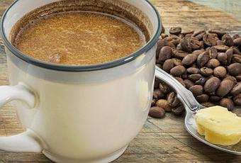 Un café avec du beurre de l'huile de noix de coco de la stevia et de la cannelle.