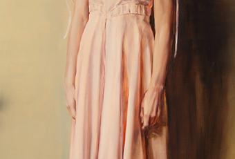 « The Avoider », une monumentale toile de plus que quatre mètres de haut ouvre la marche. Qualifiée de « christique » par l’artiste, l’œuvre représente un homme portant une tenue à la fois élégante (foulard de soie) et débraillée (pieds nus et sales), debout, perdu dans ses pensées. A cette drôle de scène s’ajoute la présence d’un mystérieux bâton de bois. Berger ou dandy? On l’ignore…Lui faisant suite, une série de petits et moyens formats dépeignant des personnages de dos ou de trois-quarts, empreint de sensualité révélant subtilement mais sensuellement une nuque ou comme dans « The Ear », une oreille blessée. « Sleeper » représente une petite fille assoupie, dont la beauté pâle et morbide suggère qu’elle a rendue l’âme. Dans « The Devil’s Dress », un homme nu et étendu à même le sol porte une robe rouge en carton. Par son intitulé évocateur, Borremans brouille encore une fois les pistes en nous amenant à focaliser sur l’aura diabolique se dégageant de cette robe à la matière peu conventionnelle. D’un point de vue technique, le coup de pinceau à brosse longue nous rappelle la pratique des grands maîtres notamment celle du grand Velasquez. Les sujets eux sont souvent inspirés directement d’Edouard Manet pour qui il voue une grande admiration. C’est après plus de quinze années passées à produire des œuvres que l’artiste prend conscience qu’il s’essouffle progressivement et n’arrive plus à créer dans cet atelier « hanté par les fantômes ». Borremans – en quête d’un second souffle – part en 2012 à la recherche d’un nouvel endroit et finit par investir une chapelle désaffectée. L’aspect sacré des lieux où il dit « s’adresser à la Vierge et à ses pinceaux pendant qu’il y peint » lui inspire une série de tableaux à l’iconographie chrétienne, comme en témoigne l’impressionnant « The Angel ». Mesurant plus de trois mètres de haut, un personnage androgyne représenté débout dans une belle longue robe rose, bras ballants, tête baissée et visage couvert de cirage noir, nous hypnotise tant par l’illogisme des éléments que par la facture picturale captivante de perfection. Oui, Michaël Borremans compte bien parmi les artistes vivant les plus brillants du 21ème siècle. Divinement hypnotique.