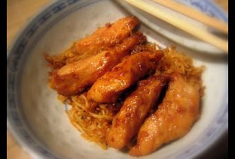 Retirer les lanières de volaille de la marinade et les égoutter. Réserver la marinade. Mélanger la viande avec la fécule de maïs.