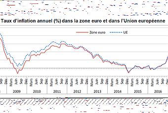 Fin janvier 2018, Eurostat estimait le taux d'inflation annuel de la zone euro à 1,3 %, bien loin de l'objectif de 2 % à moyen terme :