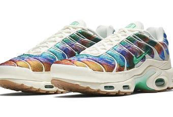 Ajouter un tel colorway à un design aussi puissant que celui de la requin génère un visuel objectivement impressionnant. Basée sur une outsole en gomme la sneaker reste très lumineuse. Midsole, mudguard, lacets, languette et doublure interne s’offrent à un blanc voilé. L’exo squelette de la requin suit le même schéma. C’est donc l’upper dans sa totalité qui se pare de ce colorway multicolore dans une atmosphère galactique. 3 nuances majoritaires se démarquent, ainsi Sail, Hyper Crimson et Menta s’associent pour un final retentissant. En posant le regard sur la silhouette difficile de savoir si l’on pense aux effets de l’essence dans une flaque d’eau, à une aurore boréale ou à la palette de peinture d’un artiste. Ce qui est certain c’est que cette silhouette captive le regard. Pour le moment pas d’information officielle concernant la date de sortie et le prix de cette Nike Air Max Plus Multicolore. Nous ne manquerons évidemment pas de vous tenir au courant dès que nous en saurons plus.