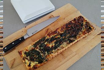 - Disposer les blettes sur le fond de tarte en alternant 3 couches de feuilles et 2 couches de blancs. Verser par dessus l'appareil à quiche.
