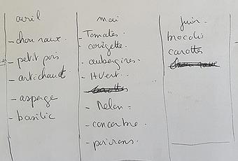 Nous avons sélectionné les légumes que nous souhaitions mettre dans notre potager, et avons retenu une dizaine de légumes :