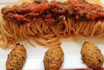 ... je l'ai servie avec mes spaghettis et mes quenelles de lentilles.