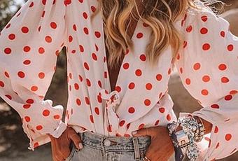 L’élégance de son décolleté plongeant & de ses manches ballons fait que l’on succombe à cette jolie blouse à pois rouge Lovers + Friends ..
