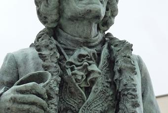 Détail de la statue de Voltaire à Oyonnax (Photo Ch. Cottet-Emard )