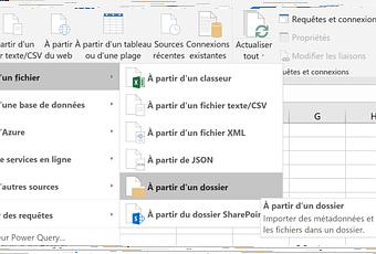 Dans un premier temps, assurez-vous que tous vos fichiers à fusionner soient enregistrés dans le même dossier et utilisez l’option Obtenir des données / À partir d’un fichier / À partir d’un dossier.