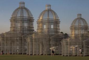 Le sculpteur et plasticien italien Edoardo Tresoldi, vivant et travaillant à Rome, a érigé pour le festival de musique Coachella en Californie, l'installation Etherea de trois édifices massifs en grillage métallique, reproduisant trois fois la même architecture en différentes tailles...