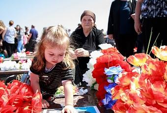 À l’occasion de la Journée nationale des personnes disparues, les familles de disparus se rassemblent à Meja, un village situé dans la municipalité de Gjakovë/Dakovica, pour se recueillir sur la tombe de leurs proches. CICR/Jetmir Duraku