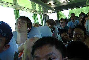 Aurions-nous oublié de vous présenter les transports en commun vitnamien ?? Ici, on ne perd pas de place dans le bus puisque des tabourets sont installés dans l'allée !