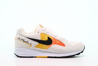 Ce coloris présenté ici, aux côté de la Solar Red, est réservé à la gente féminine mais certains shop comme le NikeStore pourront la proposer jusqu’au 44,5. Cette Skylon II Black Amarillo (Amarillo signifie jaune) ne fait pas partie des coloris originaux, cependant ce dégradé jaune orange fonctionne à merveille. Comme tous les colorways représentatifs du modèle, le reste de l’empeigne est blanc. Une chose est certaine, Nike nous régale avec cette rétro très réussie quand on la compare à l’OG, en arrivant tout de même 26 ans après sa sortie originelle.
