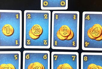 Chacun à votre tour et à partir du 1er joueur, choisissez un nombre de cartes dont le total est exactement de 14 Or, puis placez les faces visibles devant vous.
