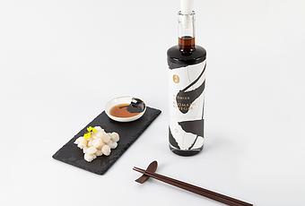 Le vinaigre aromatique est donc assimilé à l’encre, l’un des quatre joyaux de l’érudit, dans le but de mettre en valeur le profond charme culturel du vinaigre et intensifier la noble valeur humaniste du produit grâce au parallèle fait avec la calligraphie. Le noir et l’or sont les couleurs dominantes de cette expérience visuelle globale.