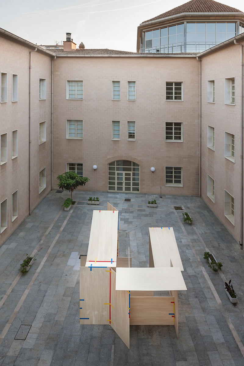 La Oficina, un studio créatif espagnol basé à Madrid créé par le designer Jorge Penadés, présente le projet expérimental et architectural La Chabola, une installation inspirée de la kinésithérapie dans la Biblioteca de La Rioja à l’occasion du Festival international d’architecture et de design de Logroño, Espagne.