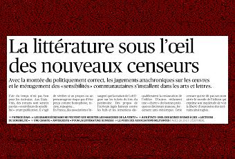Il est question de nouvelle censure, ou plutôt de nouveaux censeurs, des minorités agissantes traquant dans les œuvres littéraires passées et présentes ce qu'il est devenu inacceptable de dire ou même d'évoquer aujourd'hui, au moins pour certains qui se sentent blessés dans leur identité, leur culture, leur âme, que sais-je...
