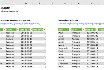 L’article suivant m’a été inspiré d’une question posée par une lectrice sur notre forum. Il y a déjà longtemps, quand l’option “Mettre sous forme de tableau” est apparue dans Excel, j’avais remarqué un comportement bizarre mais je l’avais contourné sans me questionner. Suite à une question sur le forum, j’ai soumis une réponse, un peu rapidement, et j’ai à nouveau fait fasse à la problématique. Cet article vise à expliquer la problématique en question et la façon de l’éviter. Plus précisément, il illustre comment insérer une colonne de fréquence “conditionnelle” dans une plage de données mise sous forme de tableau.