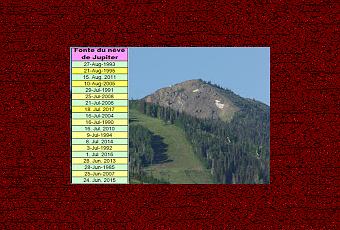 Au fil des ans, et en fonction des chutes de neige et des températures post-hivernales, ce dernier névé disparaît entre la fin juin et la fin août.Après avoir vécu la pire saison de neige que l'Utah ait connu depuis 76-77, voilà tout ce qu'il reste de neige sur Jupiter (photo au 15 juin) et celle-ci pourrait bien durer jusqu'au 24 juin, date la plus avancée parmi les observations que j'ai pu faire au cours de ces trente dernières années !