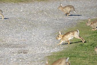 Sur cette photo, j’ai utilisé un 200 mm pour inclure le plus de lapins possible dans l’image. Mon intention était de mettre en avant la fuite commune d’un groupe de lapins (à mon approche ! 🙂 )