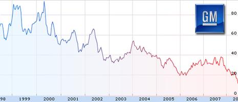 L’action de GM est passée sous la barre psychologique des 10 $ et était à la fermeture mercredi à 9,98$. La capitalisation boursière de GM est de 6 milliards tandis que celle de Toyota est de 148 milliards. À Titre de rappel aux détracteurs de Ford sa capitalisation est de 10.6 milliards.