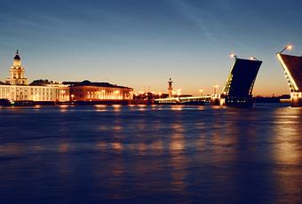 Chaque année de fin mai à début juillet, la nuit ne tombe jamais sur l'ancienne capitale des tsars. L'atmosphère est vraiment magique. Pendant presqu'un mois, des concerts et des spectacles illuminent les nuits de la ville de Pierre le Grand.