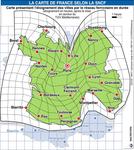 Réalisée par anaporphose (sorte de morphing), cette carte de France représente la distortion du territoire au regard du temps mis pour aller d'une ville à l'autre. Vision intéressante de notre territoire au regard de la mobilité et de la desserte des villes par le train. Elle existe aussi pour le TGV, mais je ne l'ai pas trouvée sur le web...