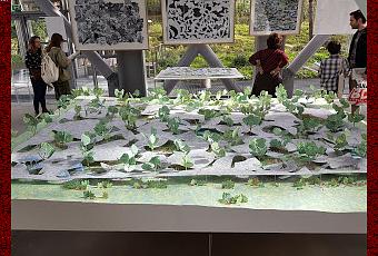 Cette expo est consacrée à l'oeuvre de Junya Ishigami, architecte japonais et présente de nombreuses maquettes qui sont autant de petits bijoux. Architecture laissant sa place à la nature, qui dialogue avec elle ou permet de la découvrir tout autre avec les projets de Tochigi, qui déplace une forêt, ou de House of peace, un igloo sur l'eau. Architecture cherchant à se faire oublier comme les villas pour Dali qui jouent sur un étonnant champ de rochers, qui dessinent des murs minéraux ouverts sur la nature et la rivière. Architecture ludique et poétique, jouant avec des lignes douces, notamment dans des projets pour les enfants, de la crèche au jardin. Architecture jouant sur l'ancien et le moderne avec cette maison de retraite où chaque maison ancienne est unique et vient d'un lieu différent des autres, proposant un rapprochement étonnant. On croise aussi un édifice religieux gigantesque à Rizhao, au milieu de la nature, où les hommes sont minuscules.