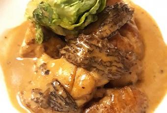 Pomme de ris de veau dorée, sauce aux morilles : 34 €