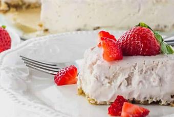 Enfin et lors du service, démoulez et décorez avec des fraises bien lavées et coupées en morceaux.