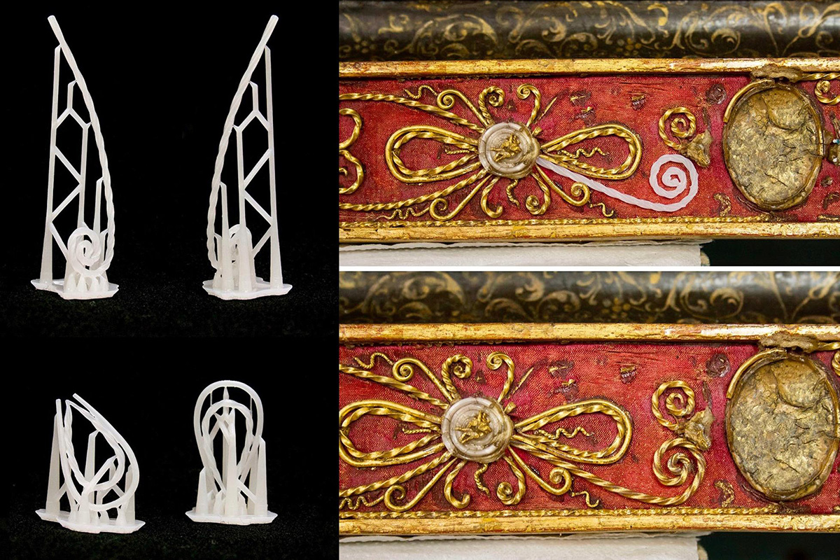 Les outils numériques tels que les scans 3D, la conception assistée par ordinateur et l’impression 3D permettent aux restaurateurs d’égaler la virtuosité technique des grands maîtres et de pouvoir restaurer des détails complexes de leurs œuvres alors impossible à réaliser d’une toute autre manière.