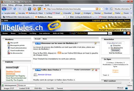 La revue de presse des Dellinfos en tant que telle n'est plus, place aux news de libellules ! Grâce à la dextérité de Falkra, voici ce soir 2 juillet 2008, la naissance du nouveau module de News de libellules.ch, basé sur PHPBoost, un CMS (Content Managing System ou système de gestion de contenu) tout en français. Longue vie à Dell et ses News et d'avance un grand merci à Dell pour ses futures news ainsi qu'à son géniteur Falkra, pour tout le travail fourni lors de la conception.