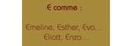 Les originaux : Adam, Aidan, Albane, Anatole, Ange, Arsène, Célian, Clovis, Constantin, Cyprien, Domitille, Elio, Esteban, Evan, Gabriel, Gaspar, Gaylord, Harry, Julian, Kellian, Léni, Loïs, Maé, Malo, Marin, Maxence, Milann, Nael, Noam, Nolan, Oscar, Titouan, Valentin, Valmont, Virgile.
