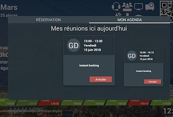 Une fois que l’utilisateur a badgé, il va pouvoir consulter sur l’écran tactile ses réservations dans la salle concernée. Il peut également réserver un nouveau créneau, annuler ou modifier un créneau existant. Inutile pour lui d’entrer ses informations, le fait d’avoir badgé suffit à le reconnaître dans le système.