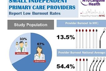 Source: Journal of the American Board of Family Medicine (In Press) via Eurekalert (AAAS) 9-Jul-2018 Physician burnout in small practices is dramatically lower than national average (Schéma Department of Population Health, NYU Langone Health)