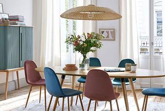 Notre crush ultime, c'est sans aucun doute ces chaises " Novani " en métal et velours. Des lignes arrondies toutes en finesse, des couleurs douces et pastels cernées de noir pour un maximum d'élégance...