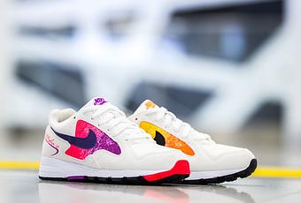 La paire est pour la première fois apparue en 1990 sur le marché du running puis déclinée dans cette seconde version en 1992. C’est la première fois que ces runnings sont réédité par Nike qui a bien compris l’impact qu’elles ont pu avoir sur les collectionneurs de l’époque. 3 coloris sont de retour cette saison avec la paire Black Amarillon pour femme accompagnée des déclinaisons Eggplant et Court Purple en size homme. La signature de la Skylon est présente au niveau de la partie arrière du midpanel pour une paire qui présente une association de textile beige et mesh blanc.