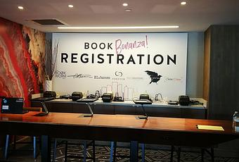 Après avoir rentré notre numéro de confirmation, nous avons pu récupérer notre badge puis notre swag bag. J'adore le T shirt , la gourde bookworm box et les autres goodies que vous pouvez voir ci dessous.