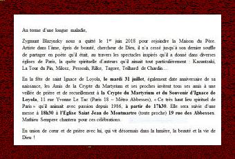 ce dernier qui animait la crypte du Martyrium et la paroisse de l’Eglise St Jean de Montmartre-