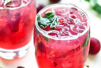 Enfin servez dans de grands verres immédiatement avec le reste des feuilles de menthe, glaçons et quelques canneberges.