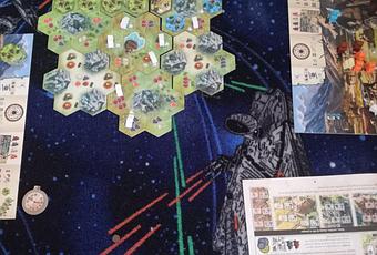 Chaque joueur va donc posséder un plateau personnel pour gérer ses actions. Il y aura aussi un plateau de jeu commun pour positionner ses campement et voir l’avancée de son développement. Et pour finir un dernier commun lui-aussi qui va vous permettre de collecter les ressources et de faire votre marché.