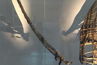 Prendre son envol, pour un oisillon, c’est devenir oiseau et risquer sa vie pour quitter le nid. C’était la question posée par un spectacle de rue de la Compagnie Adhoc présenté dans ce blog l’année dernière ou encore par un texte de Patrick Laupin ici. Ce n’est pas de cela qu’il s’agit cette fois. Ni de jouer les monte-en-l’air. C’est du désir de partir, de prendre la voie des airs qui anime les humains depuis si longtemps. Battre des ailes, chuter bien sûr, et repartir, essayer encore. Les spectateurs sont invités à expérimenter des positions : debout, assis, allongés, chaussés ou pieds nus… Certaines images sont fixes, d’autres animées. Tout l’espace est transformé. On regarde très haut, on regarde en bas, ou au loin. C’est parfois émouvant, parfois drôle. Je pense aux départs, aux ailleurs, aux évasions.