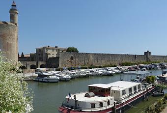 Et qu'elle est belle, cette porte ! C'est celle d'Aigues Mortes, la porte des remparts qui entourent cette ville fortifiée dont la tour a connu plusieurs fonctions... dont celle de prison pour femmes protestantes. Aujourd'hui, elle accueille des touristes. Avec cette tour circulaire, donc, qui semble avoir un lien de parenté avec la Torre del Oro de Séville ; avec ses ruelles désertes à l'heure de la sieste, ses maisons basses dont les fenêtres sont protégées par des grilles en fer forgé ; les lourdes portes derrière lesquelles on imagine aisément des patios frais et fleuris, Aigues Mortes, c'est déjà l'Andalousie. Ce n'est pas un hasard si, dans ces contrées, les arènes trônent encore en bonne place dans chacune des villes croisées. Lorsque celles-ci se transforment momentanément en lieu de spectacle, accueillent de la musique ou de l'humour, on leur pardonne leur vil passé et on se dit que, comme lieu rassembleur, on fait difficilement mieux que ce cercle à la fois grandiose et intime.
