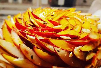Le chef Alexis Coffre, Brasserie Thoumieux , présente cette superbe création gourmande, la pêche de Corse. Elle est composée d’une Fine coque de Chocolat blanc, d’une Confiture de Pêche à la Lavande, d’une Crème de Mûre, d’un Sorbet Pêche, d’un
