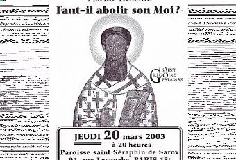 Le 20 mars 2003, le père archimandrite Placide Deseille (1926-2018), higoumène (supérieur) du monastère orthodoxe Saint-Antoine le Grand, a donné une conférence dans la paroisse Saint-Séraphin de Sarov à Paris, dans le cadre des Rencontres orthodoxes, sur le thème "Faut-il abolir son moi ?" Il y aborde la question de l'individu et de la personne dans la pensée des Pères de l’Église. Avec ma participation, celle du père Nicolas Cernokrak et d'Yvan Koenig (questions et réflexions).Les Rencontres orthodoxes ont été fondées en 2002 par père Nicolas Cernokrak et moi. Elles se sont déroulées durant plusieurs années au sein de la paroisse Saint-Séraphin de Sarov à Paris (91, rue Lecourbe, 15e). Elles ont proposé des tables rondes, des conférences et des ateliers. La première rencontre, le 8 novembre 2002, fut une table ronde sur le thème : "L'acquisition du Saint-Esprit". Le thème annuel (2002-2003) était :"Quel est le sens de la vie chrétienne ?".Les autres rendez-vous de l'année ont été : "L'amour des ennemis" (table-ronde, le 13 décembre 2002), "Péché et culpabilité" (table-ronde, le 24 janvier 2003), "La prière" (conférence, le 16 mai 2003), avec l'archimandrite Elie du monastère de la Transfiguration, "Vivre dans l’Église" (conférence, le 26 juin 2003), avec Mgr Silouane de la Métropole orthodoxe roumaine d'Europe occidentale et méridionale.