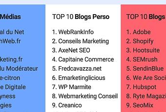 SEMrush vient de sortir son classement des 100 premiers blogs Marketing & Digital en France, basé sur des critères du "Backlink Authority Score ".