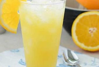 Enfin et pour servir versez l'eau gazeuse dans vos verres et complétez avec votre sirop, servez avec des glaçons et tranche d'orange.