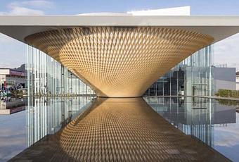 L’ouverture du musée Mt Fuji World Heritage Center (Shizuoka) a ouvert ses portes le 23 décembre 2017. Le musée a été dessiné par le célèbre architecte japonais Shigeru Ban. Le bâtiment central en forme de cône inversé treillé de bois de hinoki du Mont Fuji, symbolise la forme du célèbre et emblématique volcan.