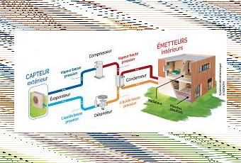 La pompe à chaleur est un appareil thermodynamique qui récupère l’énergie contenue dans l’air, la terre ou l’eau, et, grâce à un fluide frigorigène transforme ces calories pour les réinjecter à l’intérieur de l’habitation, afin de le chauffer et parfois produire l’eau chaude sanitaire. La pompe à chaleur est réversible, elle peut produire de la chaleur l’hiver, et du froid l’été. Le ballon thermodynamique fonctionne d’ailleurs de la même manière.